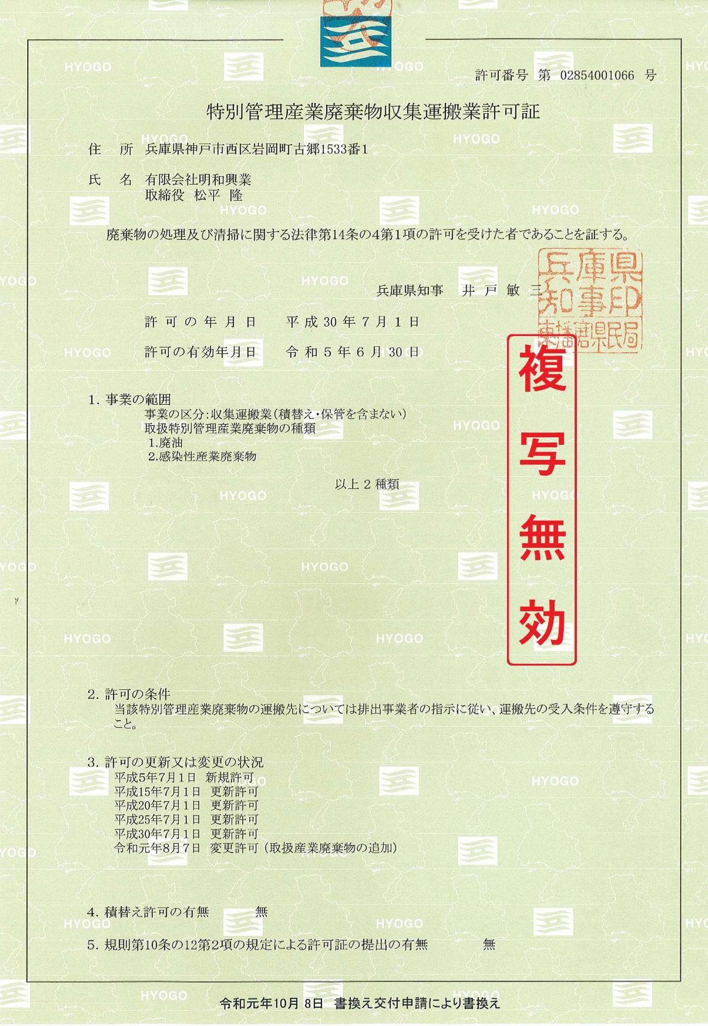 兵庫県特別管理産業廃棄物収集運搬業許可